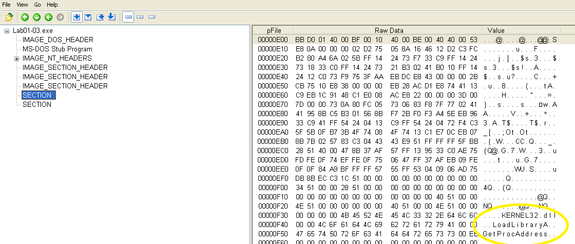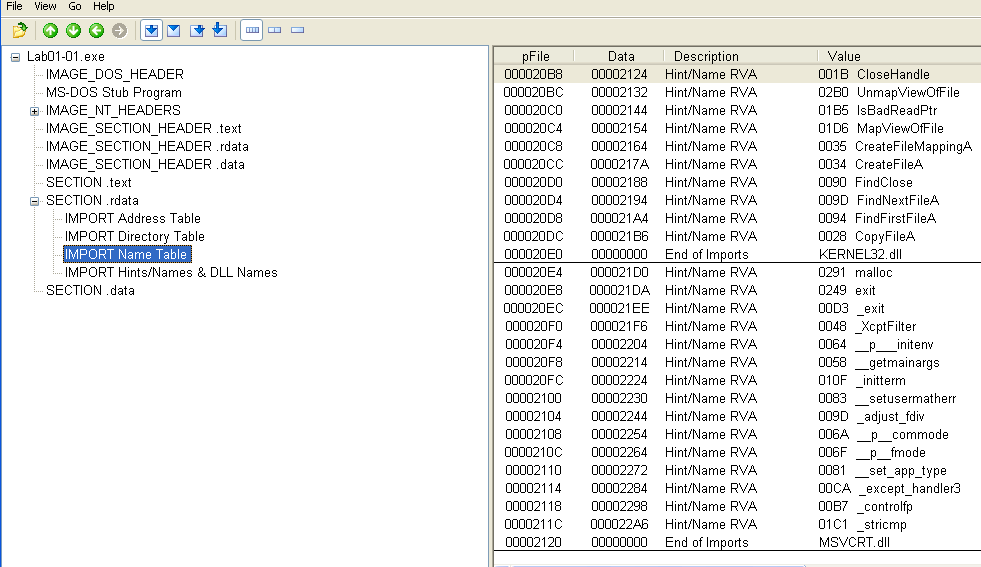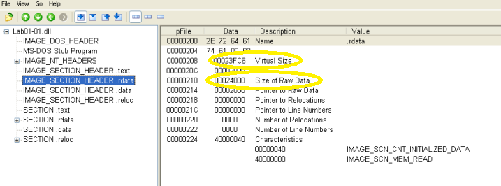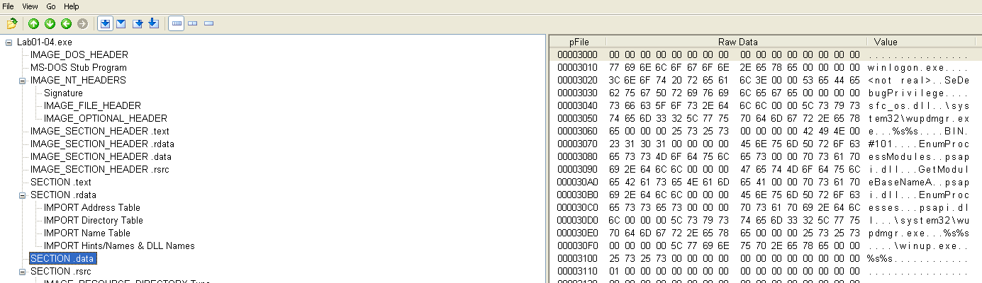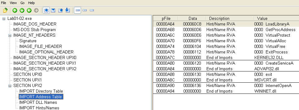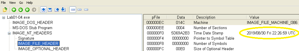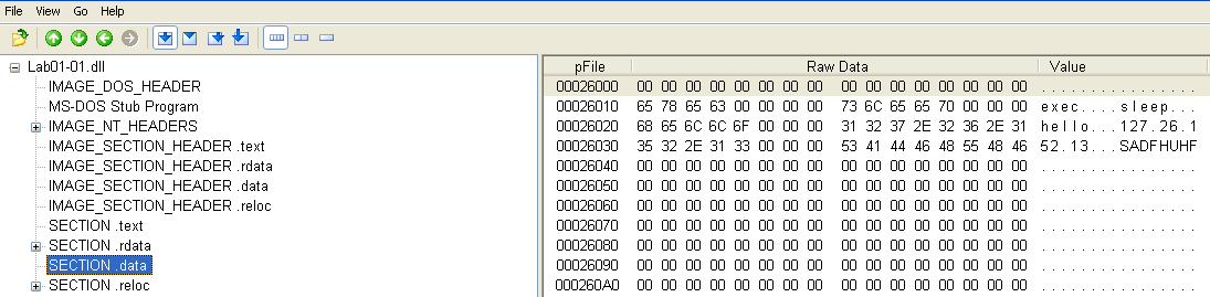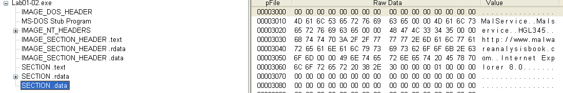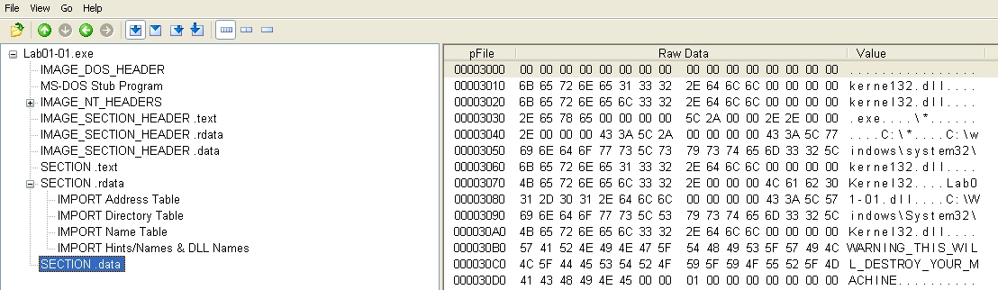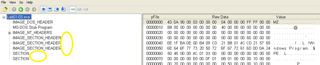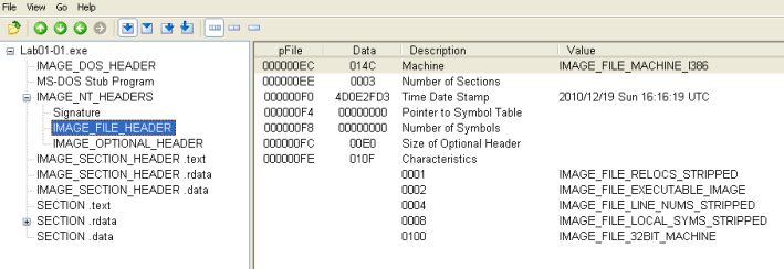 The first malware sample consists of one executable and one DLL. We are asked several questions regarding PE file contents to become familiar with their structure and the PEView tool.