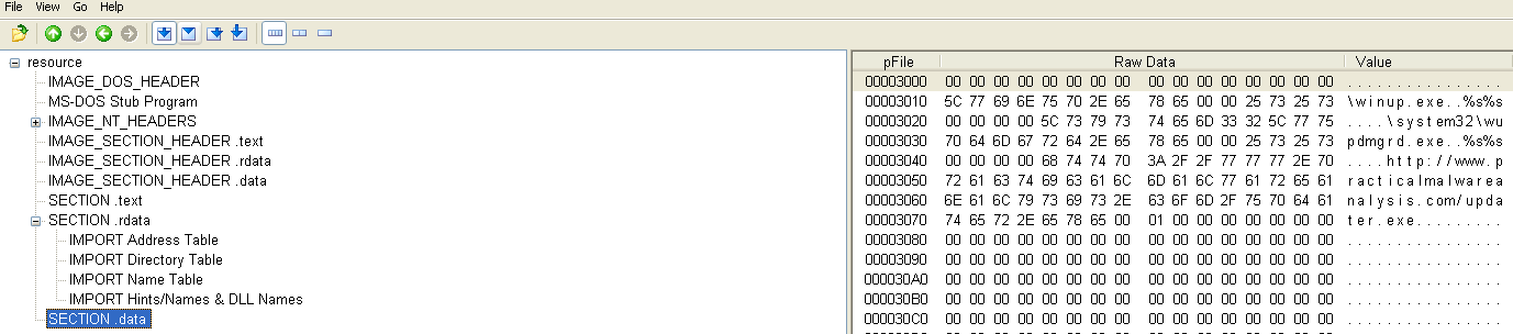 The first chapter in Practical Malware Analysis discusses the basics of static/dynamic analysis including the Portable Executable (PE) format, static/dynamic/runtime linking (DLLs), and packing/obfuscation. This chapter introduced some basic tools for static analysis of PE files such as PEView, Resource Hacker, and Dependency Walker. Four malware samples are included to reinforce what was taught in the chapter and gain some familiarity with the tools.