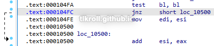 If there is a match, bl is incremented and the instruction that adds the file's information to the FileInformation structure that NtQueryDirectoryFile returns is skipped, excluding it from the results: