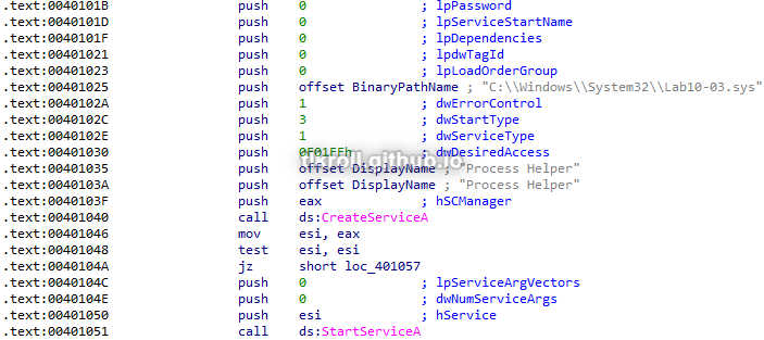 First, this program creates and starts a service named Process Helper using the malicious driver: